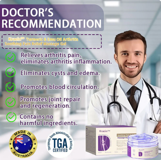 As an orthopedic surgeon, I highly recommend Kraein™ Turmeric & Emu Oil Arthritis Soothing Pain Relief Massage Gel for individuals dealing with joint pain, osteoarthritis, rheumatoid arthritis, and other inflammatory conditions. This gel combines the potent anti-inflammatory properties of turmeric and emu oil, working together to reduce pain, ease inflammation, and support joint health. Beyond pain relief, it also promotes tissue regeneration and aids in long-term joint recovery. Its unique formula helps repair damaged cartilage and supports overall mobility, offering lasting relief and improved joint function.